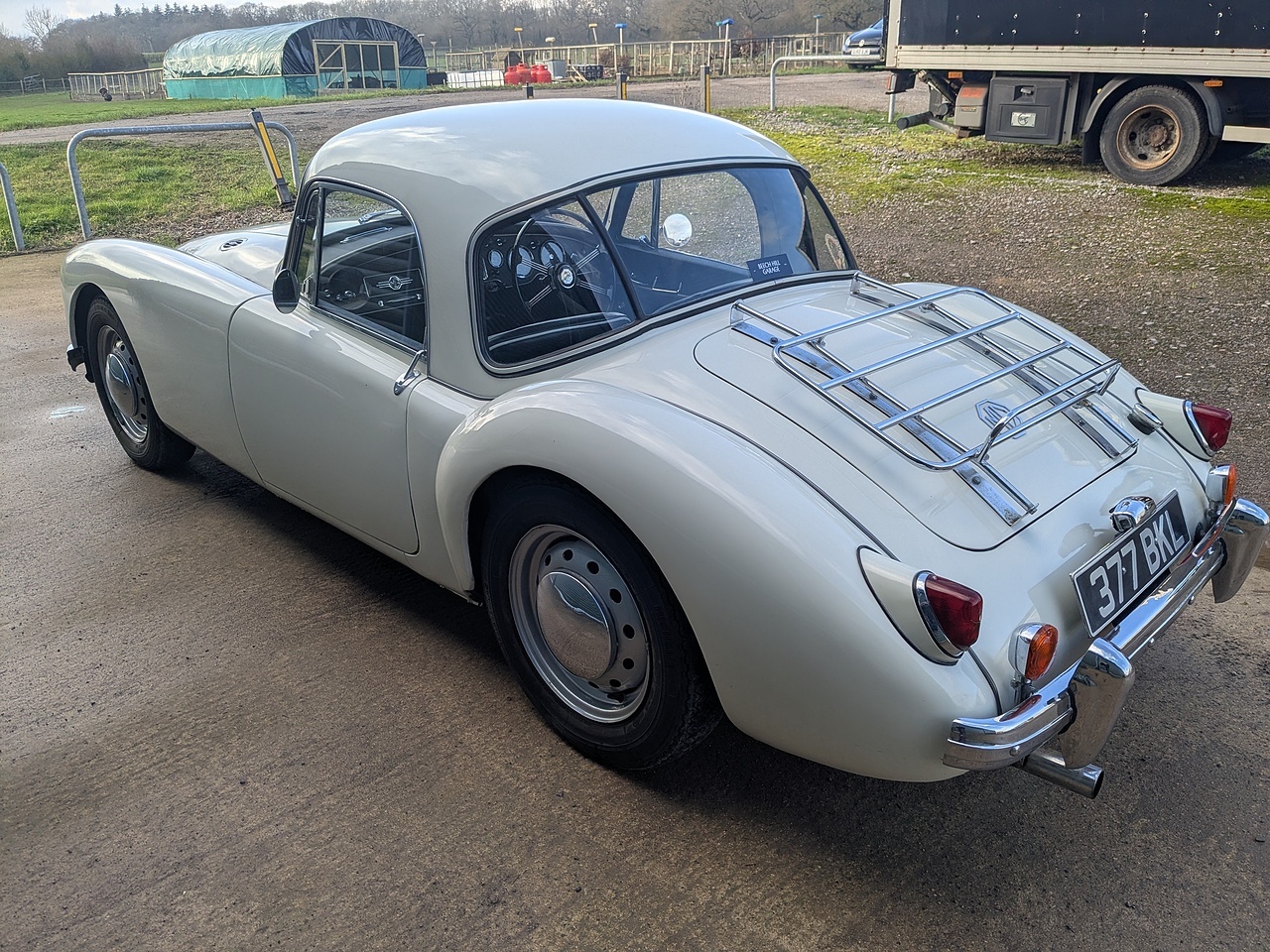 On offer is this delightful 1957 MG MGA Coupe 1500 finished in Old English White with black leather trim, piped in white.