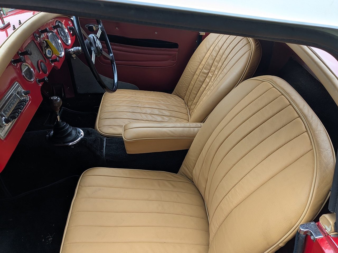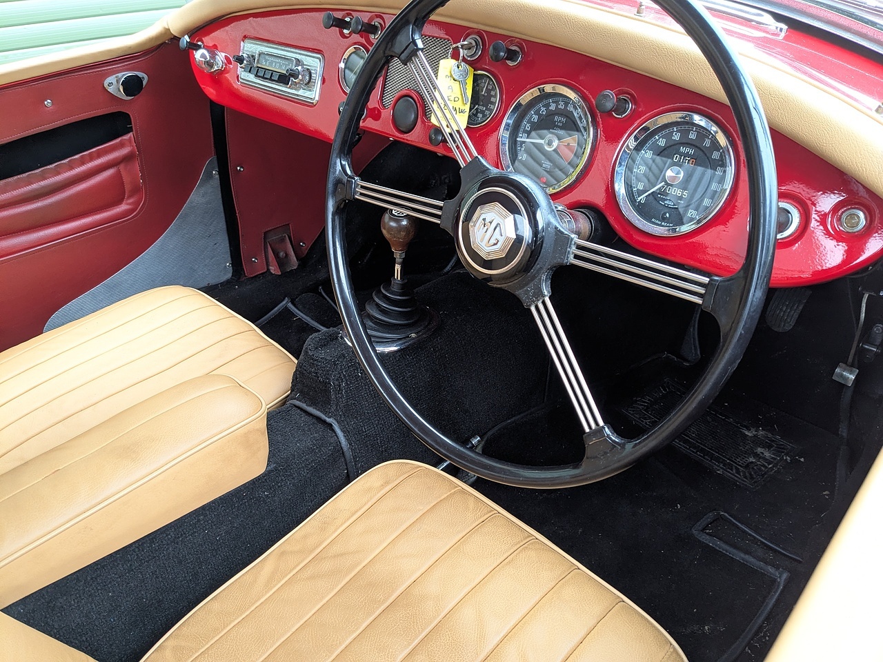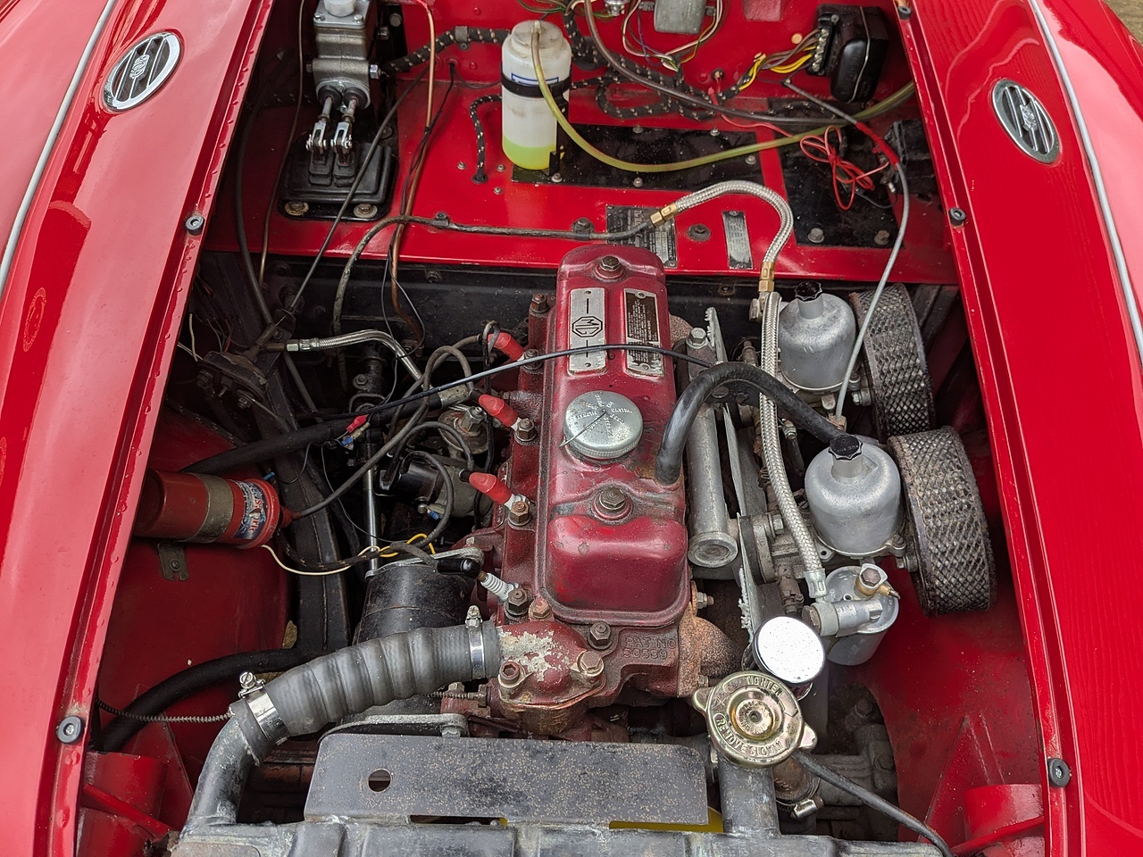 The engine and gearbox have been upgraded to MGB spec. The engine is a 1798cc 5 bearing unit and the gearbox is a 4 synchro non-overdrive item. Both making the driving experience a little more modern than a standard '57 MGA would offer but without veering too far from originality.