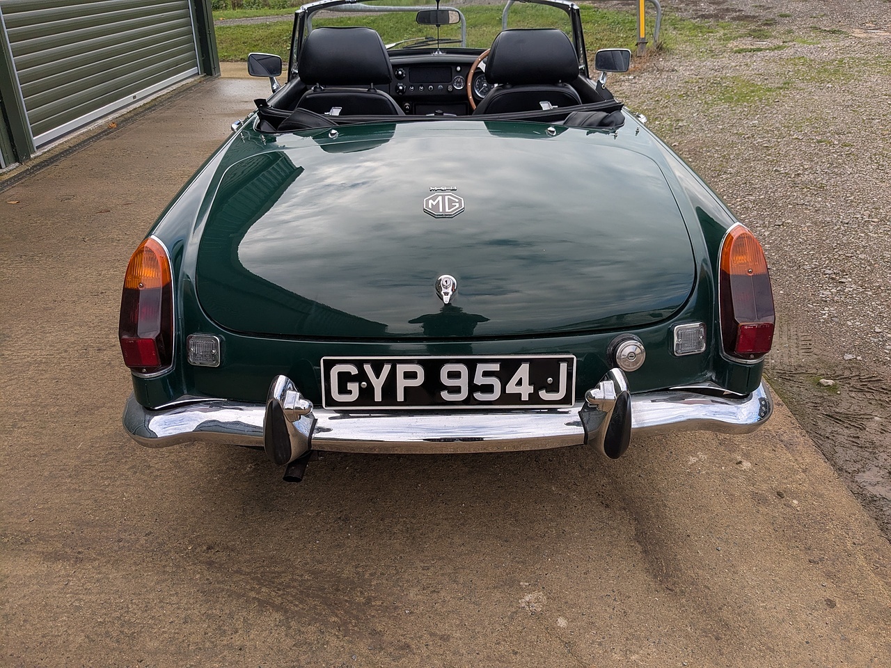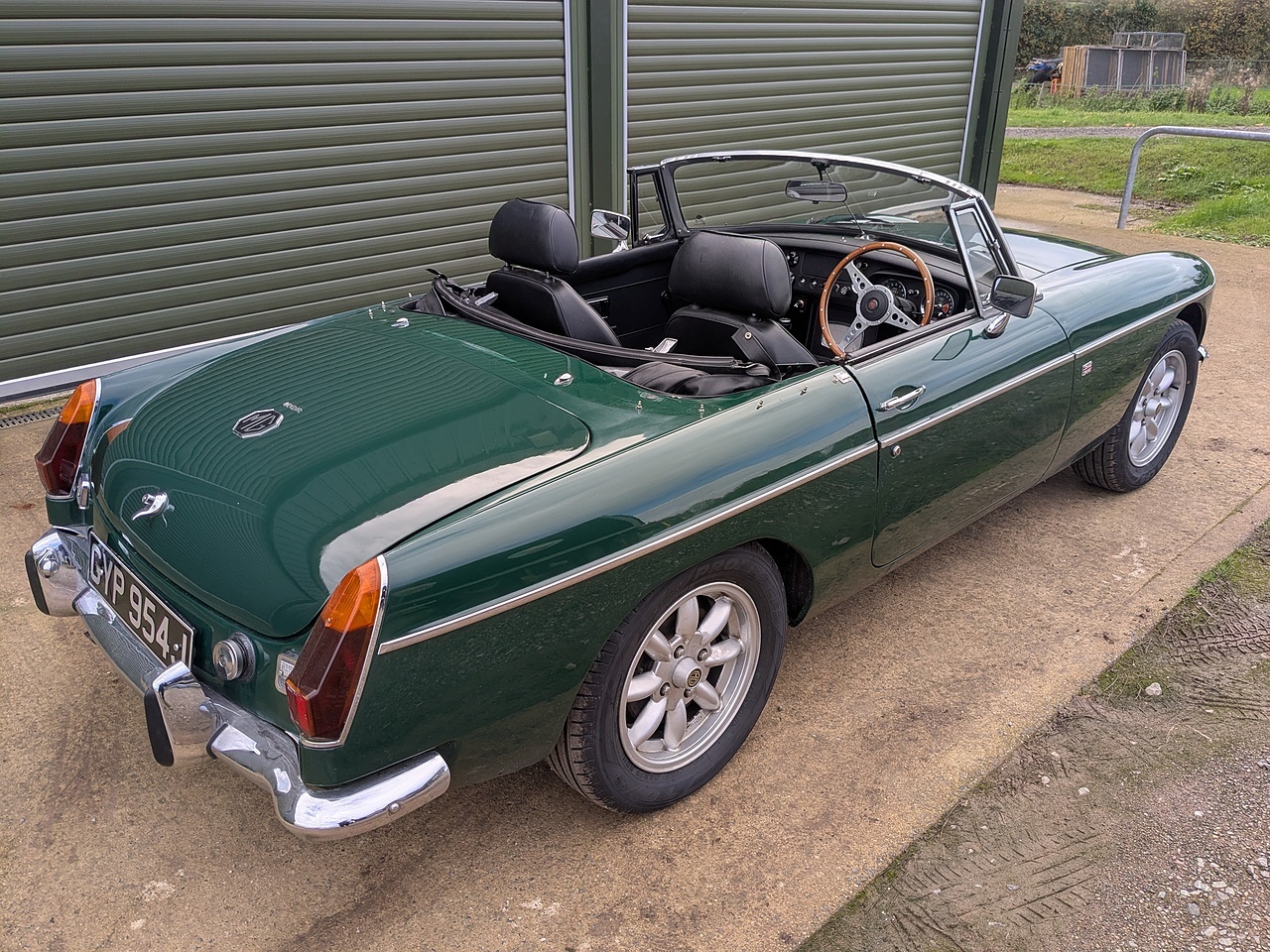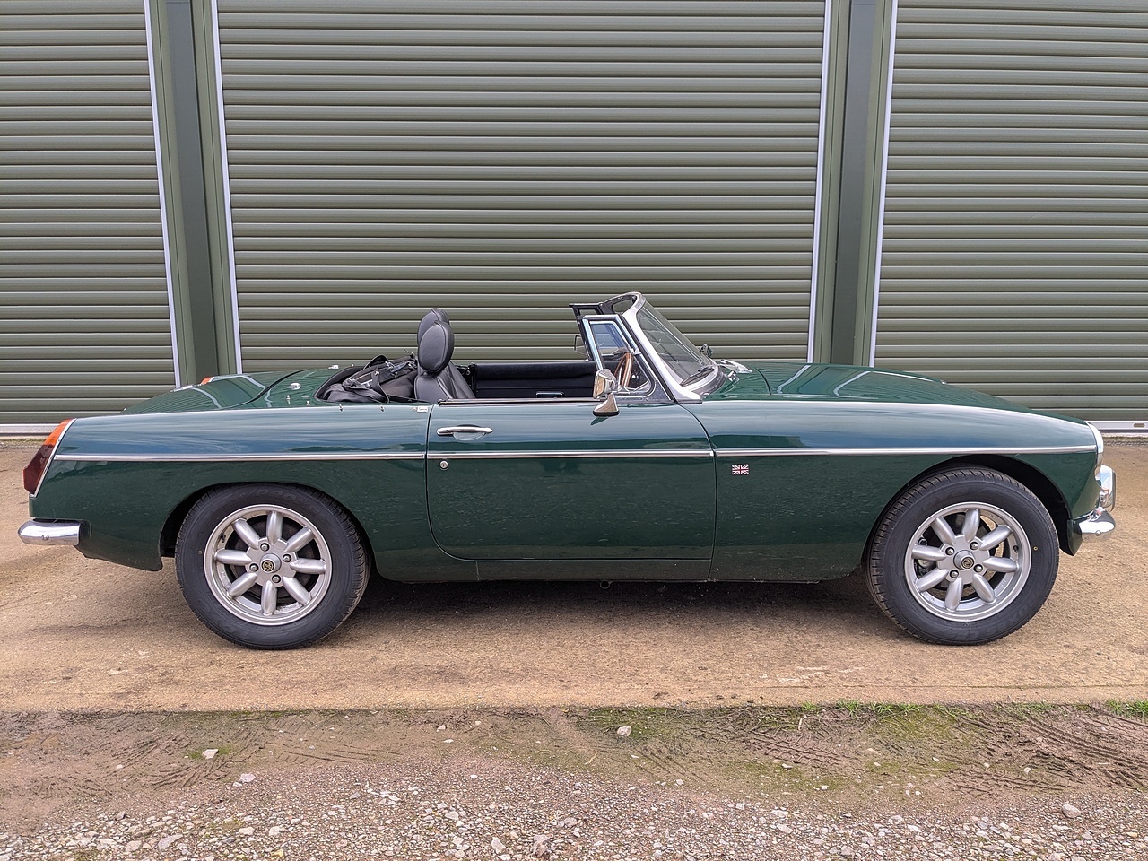 On offer is this lovely MG MGB Roadster finished in British Racing Green with a black leather interior incorporating the extremely comfortable modified seats from Moss Europe.