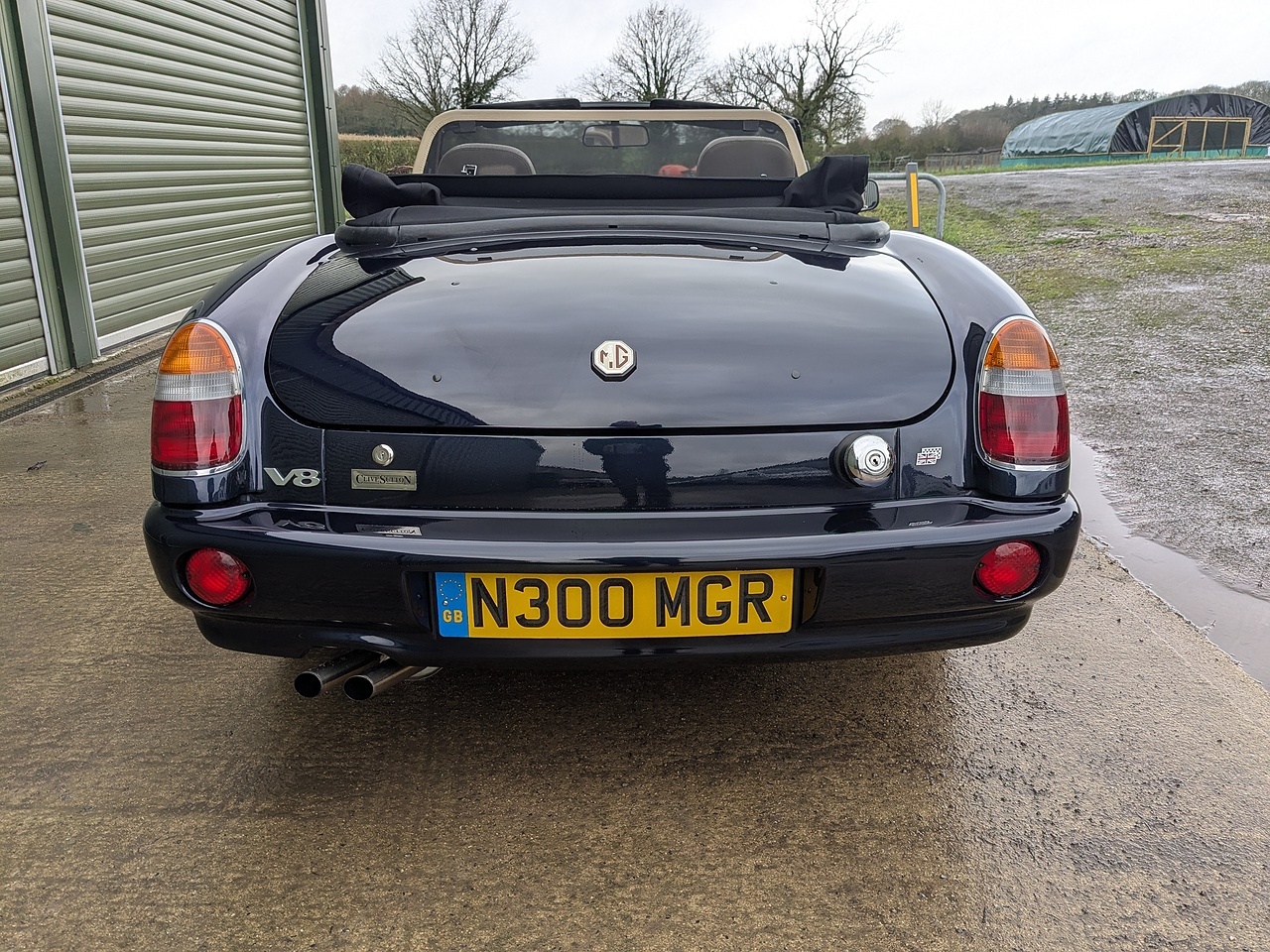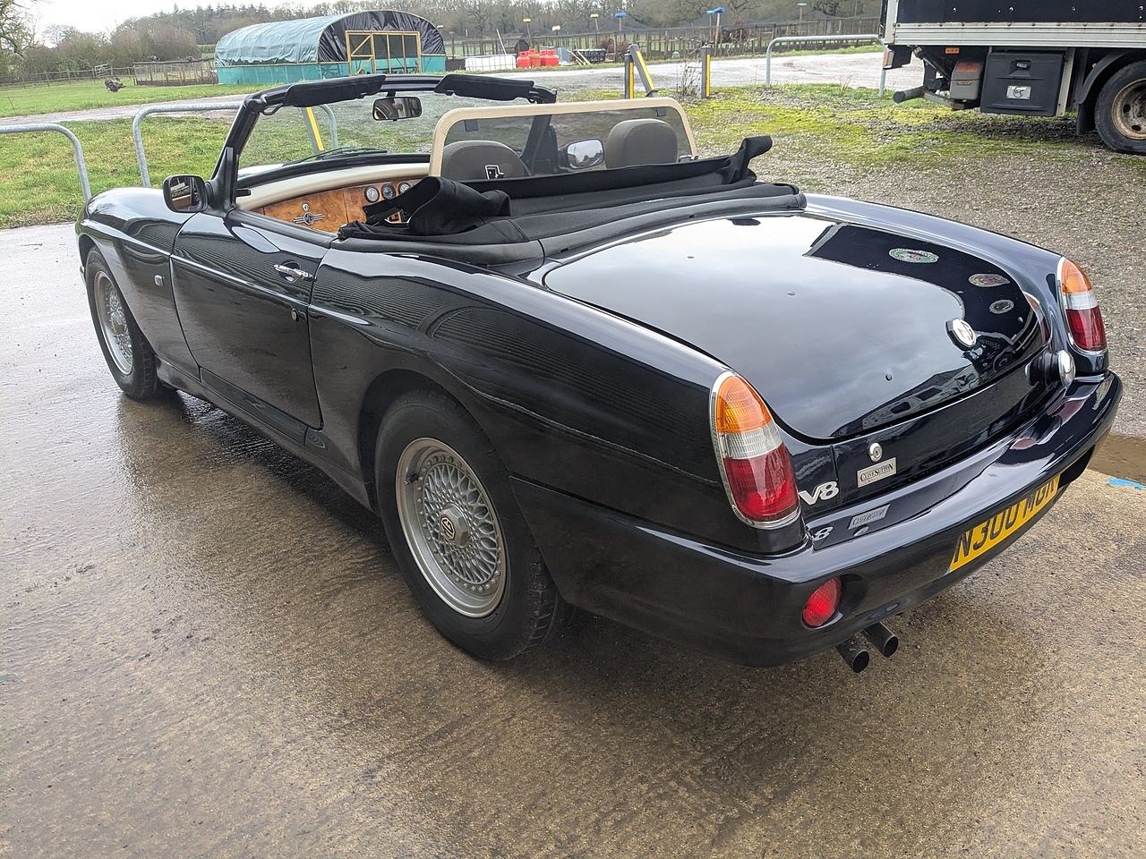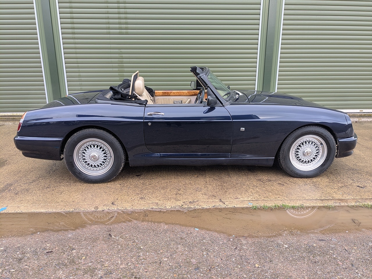 On offer is this stunning UK owned from new, MG RV8 finished in rare Oxford Blue with Beige hide trim. The car comes with a large history folder which includes the original purchase invoice and all previous MoT certificates.