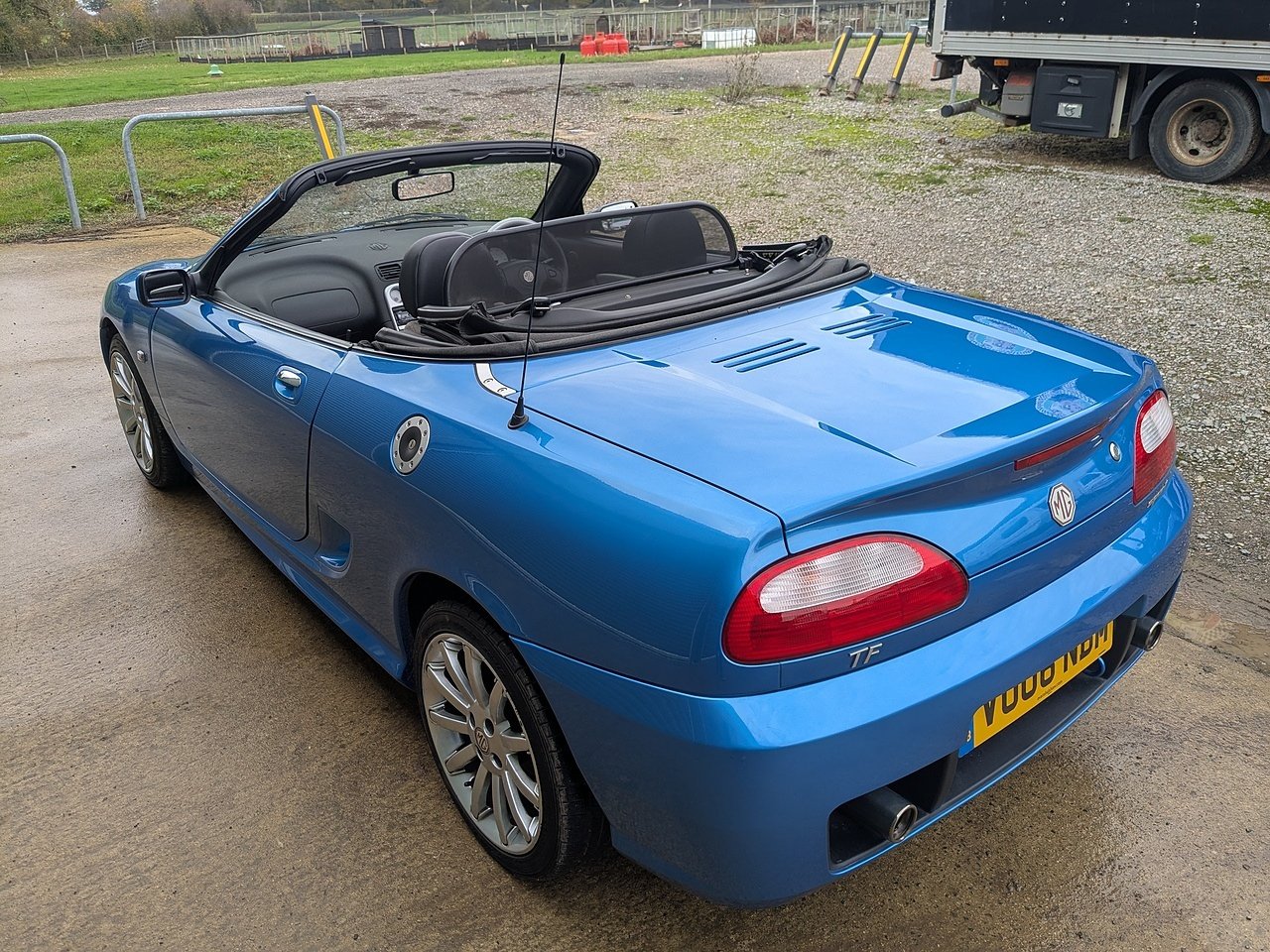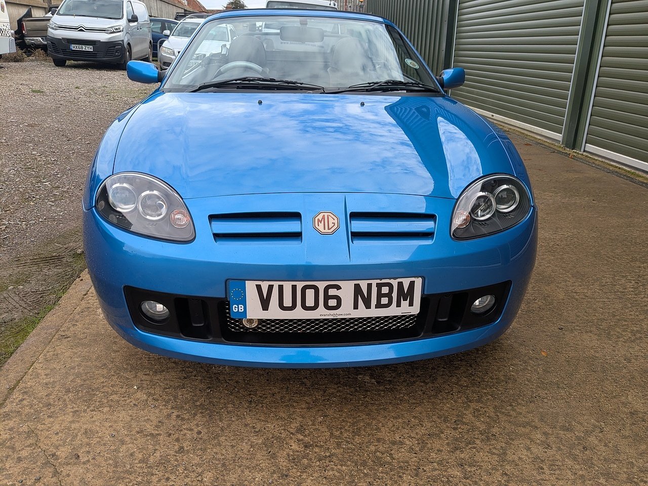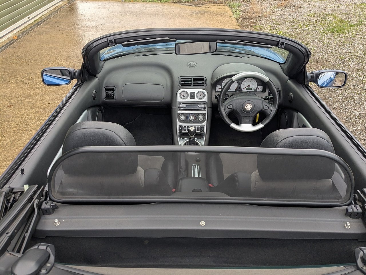 On offer is this delightful MG TF135 Spark finished in Sonic Blue with charcoal/smoke part leather interior. Being the Spark edition, it comes with 11 spoke alloy wheels, bigger brakes, windstop, chrome door handles, colour coded hardtop and a number of other enhancements.