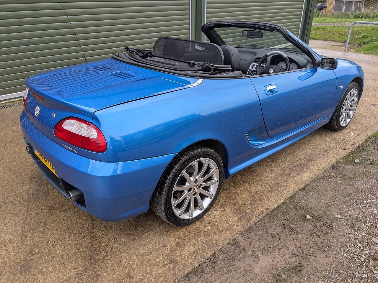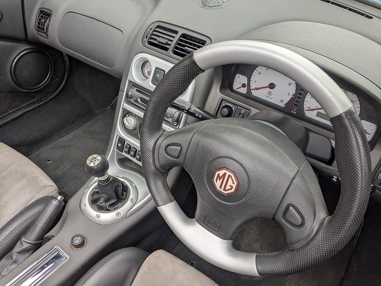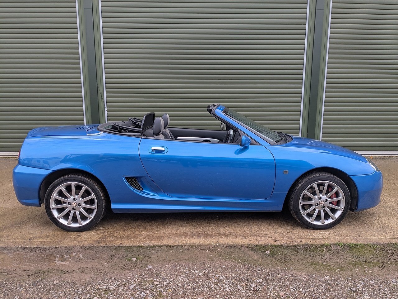 On offer is this delightful MG TF135 Spark finished in Sonic Blue with charcoal/smoke part leather interior. Being the Spark edition, it comes with 11 spoke alloy wheels, bigger brakes, windstop, chrome door handles, colour coded hardtop and a number of other enhancements.